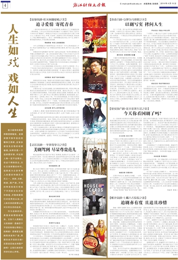 美剧题材多样的背后也少不了其内容的深刻性,一些讳莫如深的题材,如政治斗争、婚外情、性等等都被吸纳到美剧当中。人们对这些题材很敏感,但却很能反映出社会现状以及现代人的精神状态。“看美剧让我学到很多东西,思考问题的角度也更加多样化。”大一学生丁若梅说到。