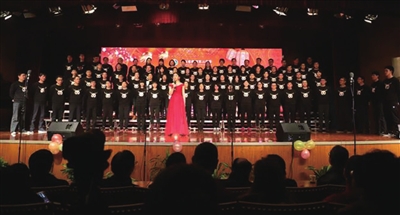 一首经典的英文歌曲《友谊地久天长》拉开了杭州二中教育集团大联欢的序幕。杭州二中滨江校区管弦乐团和年华合唱团共110余位同学在郗圣达老师的指挥下共同演绎了歌曲《我和我的祖国》,传递着浓浓的节日气氛。年华合唱团的歌手们走下舞台来到教师们中间,环成一圈,向老师们表达新春的祝福。