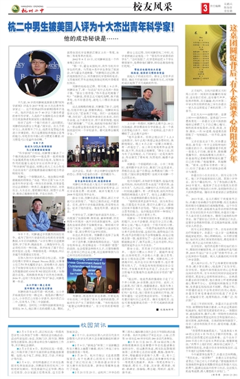 刘翀说,当时杭二中理科创新班面向全省招生30人,他以第三名的成绩入选。期间,获得全国化学竞赛浙江赛区2次一等奖、生物二等奖等多次奖项。