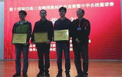 2月21日-2月24日在深圳举行的第14届泛珠三角洲物理奥林匹克竞赛暨中华名校邀请赛中,张林华教练带领的物理竞赛团队再创佳绩!共三支代表队参加,取得团体第二名和第六名的好成绩。其中周榆清同学获得个人第一名,有十二名同学获得一等奖,在浙江省参赛学校中获一等奖人数最多。具体一等奖名单如下:周榆清、程乐天、苏豪、沈宇澄、程琪皓、郑皓、郭津宏、徐赫临、蒋志超、周桢沂、温昊、康书诚。物理竞赛主教练:张林华。