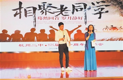 金秋时节、中秋前夕,杭州二中1988届校友于2018年9月22日隆重举行返校活动。本次活动筹备达10个多月,得到了全国乃至全球同届校友们的热情响应。返校日当天,虽秋雨连绵,校友们仍热情不减。据统计,近200多名同学返校参加活动,活动邀请到了当年任教的二十六名老师。这创造了杭城同届高中同学毕业三十年举行返校活动的人数记录。