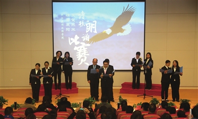 本次诗歌朗诵比赛由学院工会主办,基础教学部承办,全体教职工参加。绝大部分作品是老师们的原创诗歌,老师们用饱含深情的诗歌抒发对学院崇高的敬意和对学院美好明天至诚的祝福,彰显了老师们积极向上的良好精神风貌,用实际行动践行了学院提出的“六个追求”、“六个文化”。