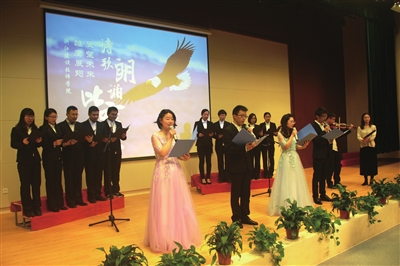 基础部王弯弯老师为大家深情奉献原创诗歌《心血育桃李,辛勤扶栋梁》,完美诠释了学院人蜡炬成灰的执着与奉献精神,令在场的每一位聆听者为之动容。经管系青年教师回眸学院历史的画卷和昔日岁月的峥嵘与风采,为大家倾情朗诵《华丽转身四十年》。