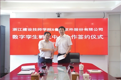 为进一步深化校企合作、产教融合,精准培育人才,5月29日,浙江建设技师学院与鲁班软件股份有限公司举行合作签约仪式,共同启动“数字孪生孵化中心”。鲁班软件股份有限公司总经理王永刚、副总经理许燊,数字教育事业部市场总监张洪军及学院院长钱正海,数字建造产业学院院长、建工系主任张国华,数字建造产业学院院长助理钱路宁参加签约仪式。