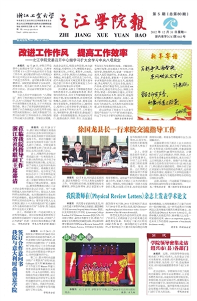 虽然已经大三,但我始终有一颗对工作热情负责的心,感谢院报,感谢老师。百期院报,承载着之江的文化和多少和我一样的青春梦想,我会继续与院报相约,提升作为一名院报记者的综合素质和能力,继续书写我人生的记者梦。